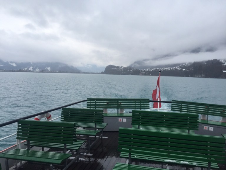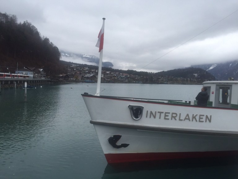 Ich lasse mich nicht entmutigen, will jetzt und heute eine Frühlingsfahrt unternehmen. Interregio nach Interlaken Ost, Shuttlebus nach Bönigen (jeden Frühling das gleiche Kabarett: die verblödenden Beamten Wasserwirtschaftsamt des Kantons Bern haben mal wieder die Schleusen zu lange zu weit geöffnet und zu viel Wasser aus dem See abgelassen, so dass die Schiffe nicht mehr ab Interlaken Ost verkehren können). Umsteigen auf das allzu kleine Schiff namens Interlaken.