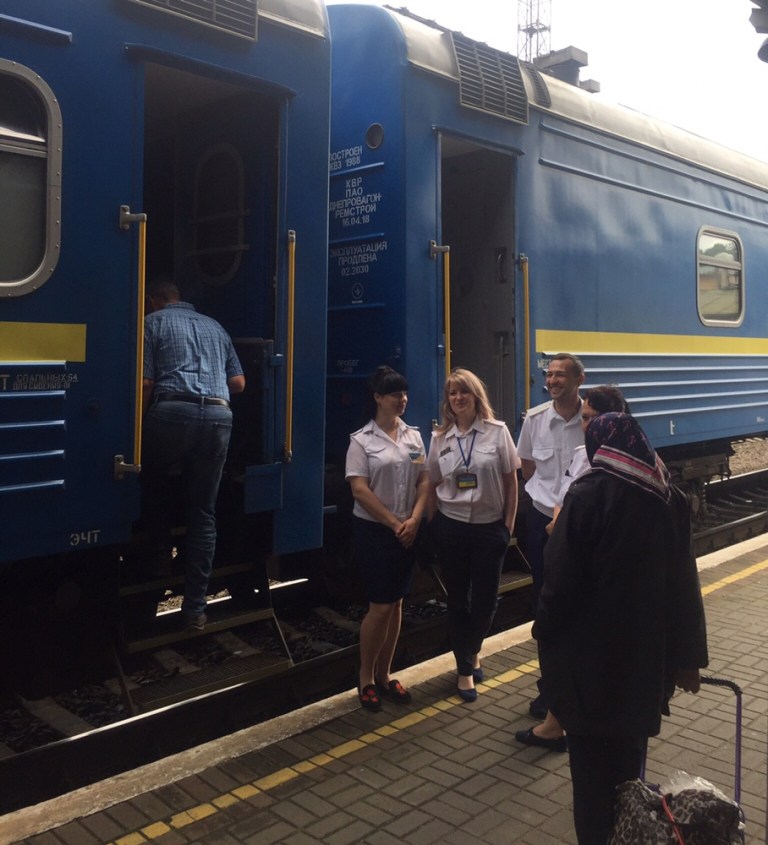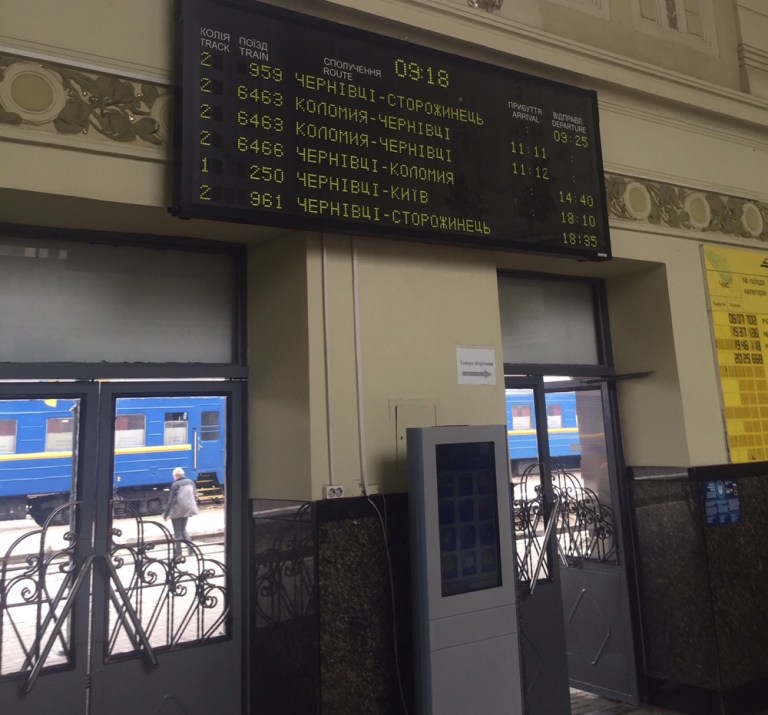 Mittags erreichen wir Kolomyya. Das Mittagessen Borschtsch und Ravioli wird im Zug an den Platz serviert. Verdauungsspaziergang auf dem Bahnhof und Bahnhofplatz inklusive Eiskremdessert aus einem Supermarkt.
