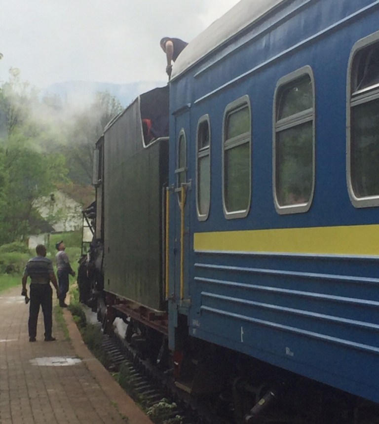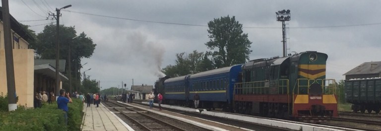 Auch jetzt hin und wieder Kreuzungen, Fotohalte, Scheinanfahrten. Gegen 17:30 Uhr erreichen wir Tatariv unsere Zugsendstation für heute.