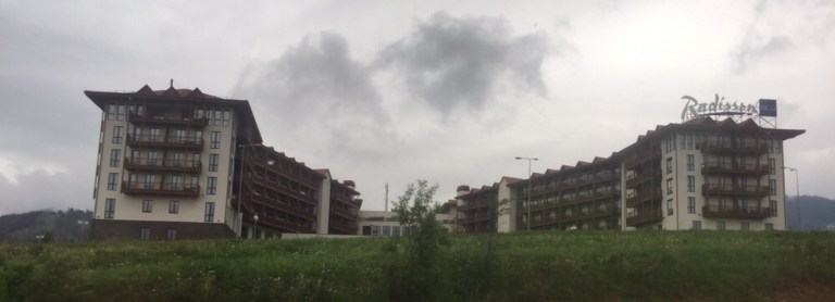 Immerhin liegt unser Hotel, ein Radisson SAS, etwas abgesetzt über dem Dorf in grüner Natur, auf knapp 1’000 (977) Metern über Meer.