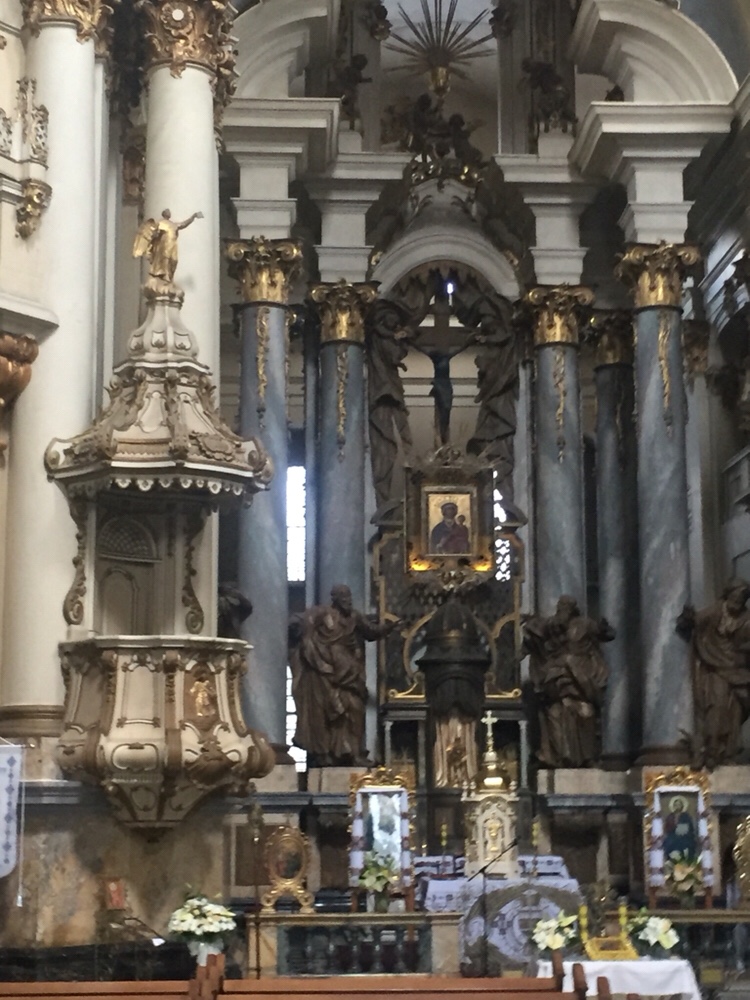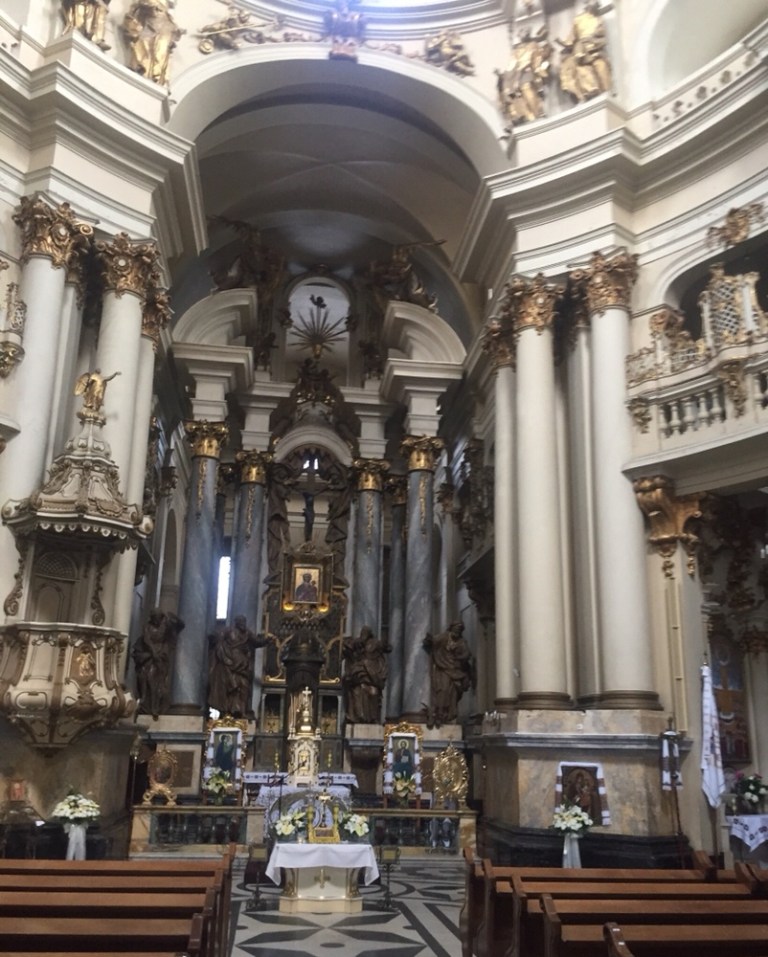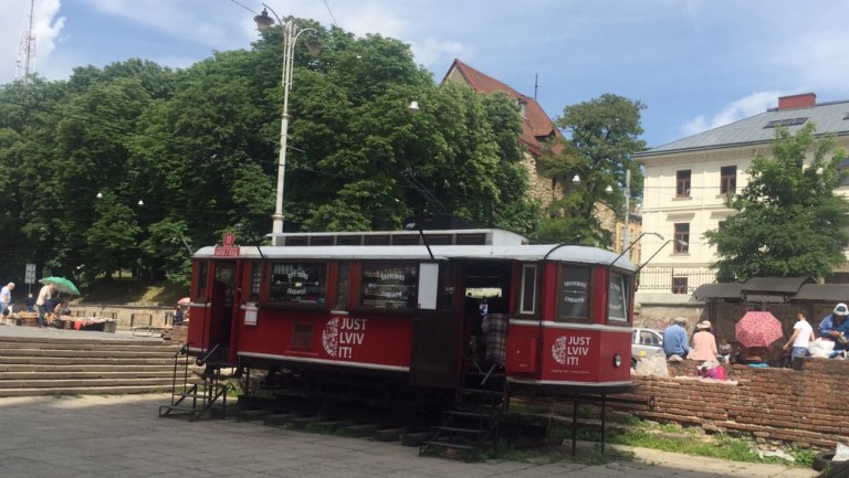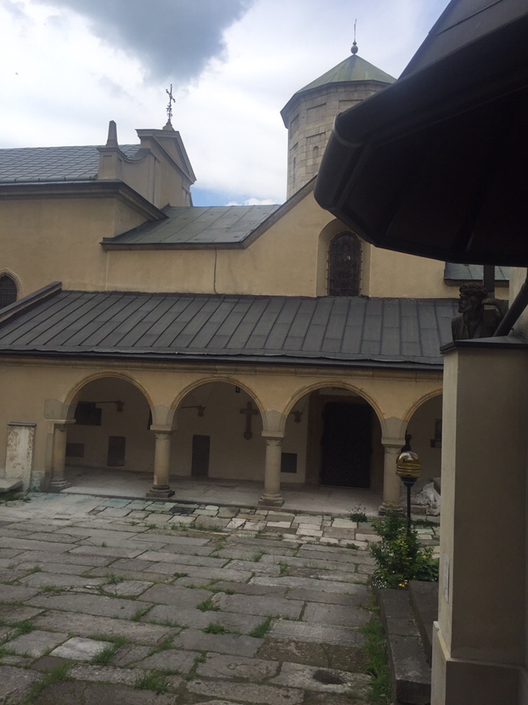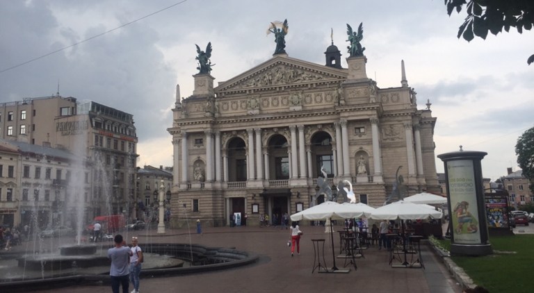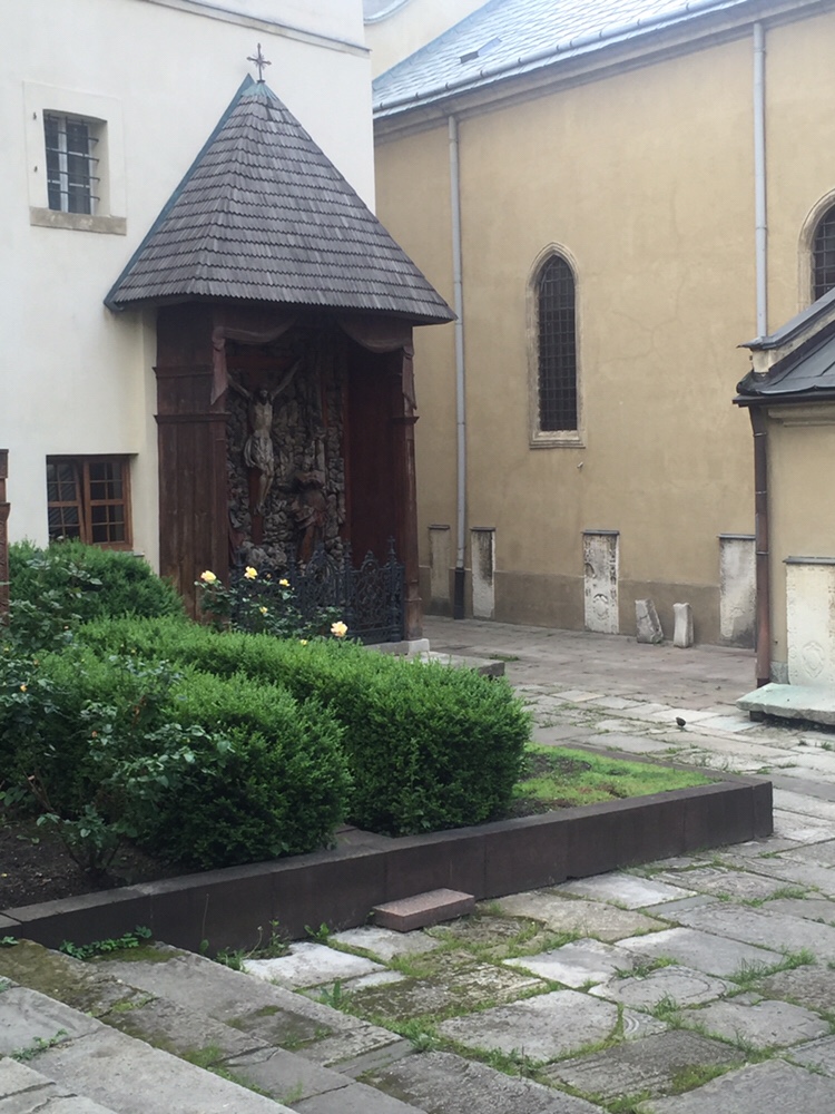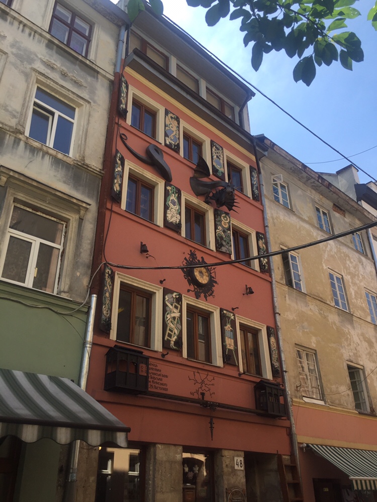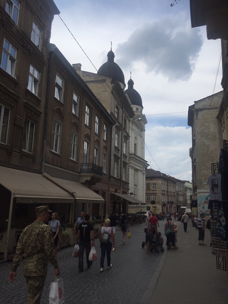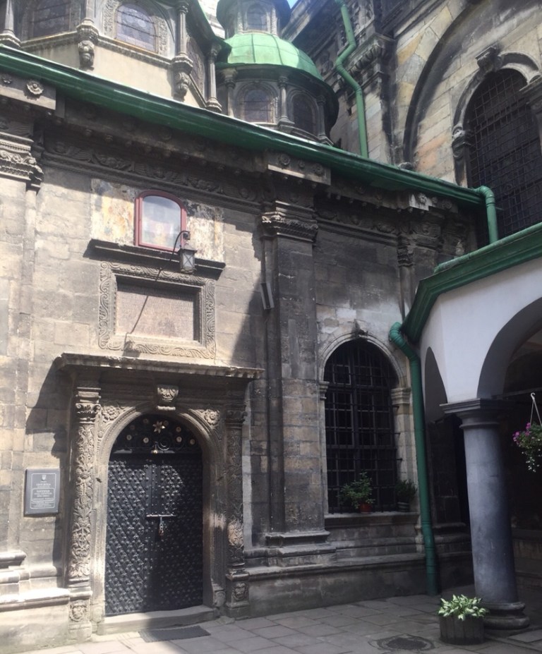 weiter ins Herz von Lemberg, ins jüdische Quartier. Mit viel Gespür bringt uns unsere Führerin ihre Stadt Lemberg näher, macht uns auf Sehenswertes aufmerksam, erzählt und berichtet über das Leben in der Stadt.