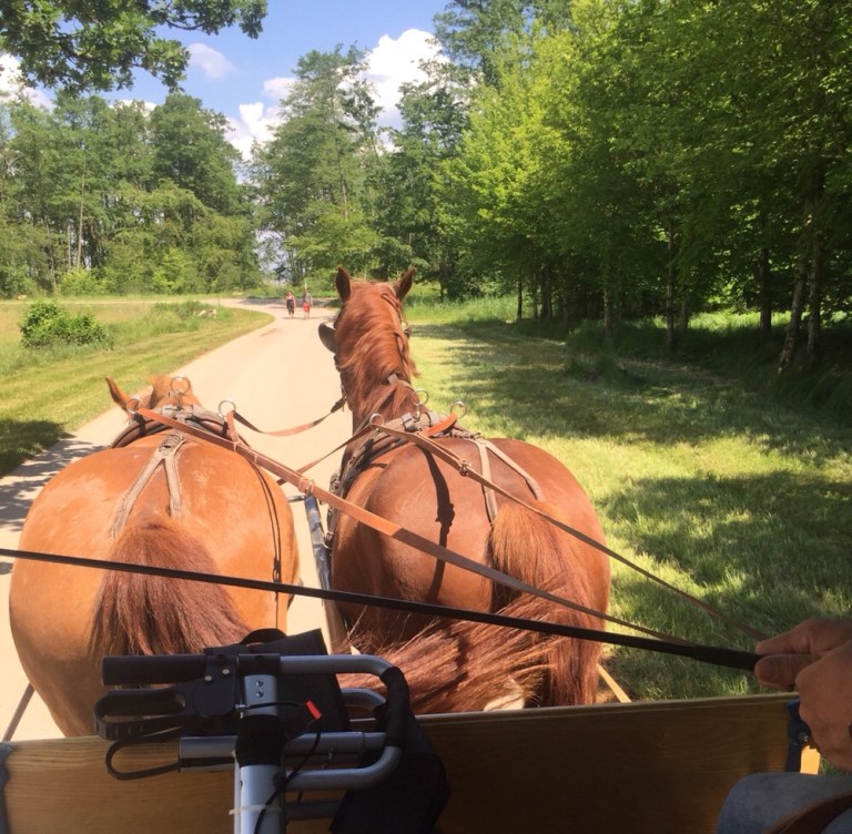 Per Pferdewagen fahren die Fusslahmen vom Schiffsanleger weiter zum Schloss.