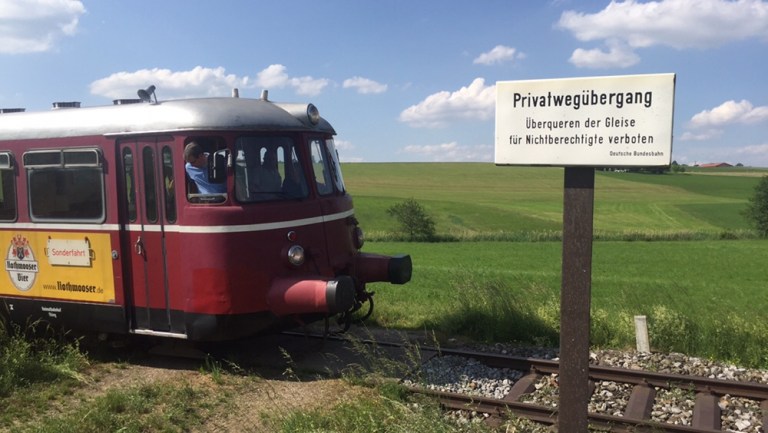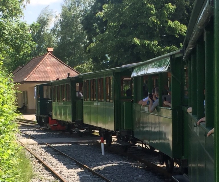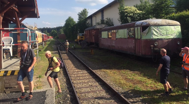Seither versucht ein Verein die Strecke zumindest am Wochenende wieder in Betrieb zu nehmen. Mit einem alten, roten, natürlich unklimatisierten Dieseltriebwagen befahren wir bei grosser Hitze (zumindest im Fahrzeug) die ganze Strecke.
