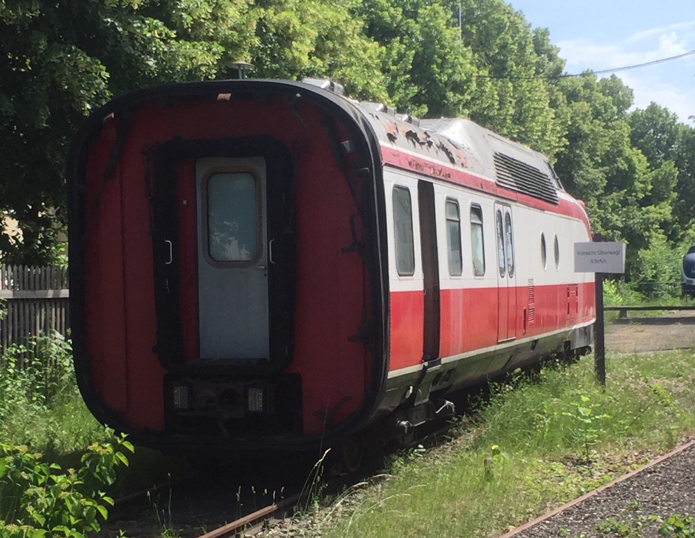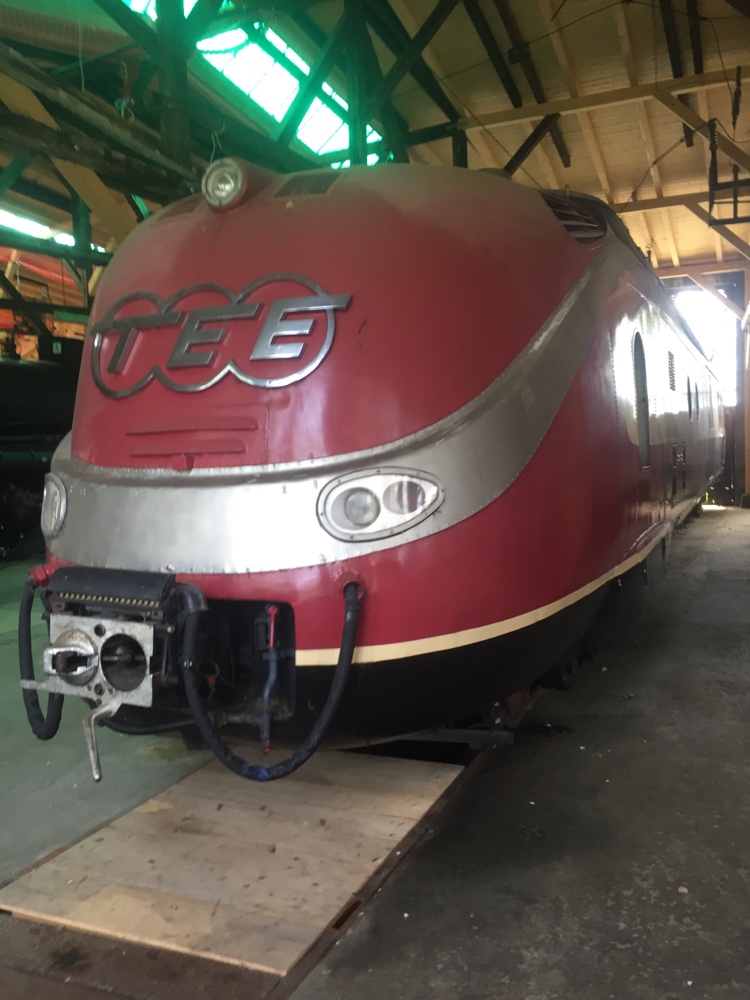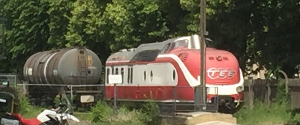 Auch das Freigelände hat etliches zu bieten, unter anderem 2 Diesel-TEE-Züge (https://de.m.wikipedia.org/wiki/DB-Baureihe_VT_11.5). Der blaue Zug kann auch gekauft werden, sofern das nötige Kleingeld vorhanden ist: 250‘000 €uro Im jetzigen Zustand, nachdem er 10 Jahre am Ort gestanden hat. Servicefachleute schätzen den Aufwand für eine Überholung auf circa 14 Millionen €. Mir leider zu viel, zudem fehlt mir das Land und das normalspurige Gleis.