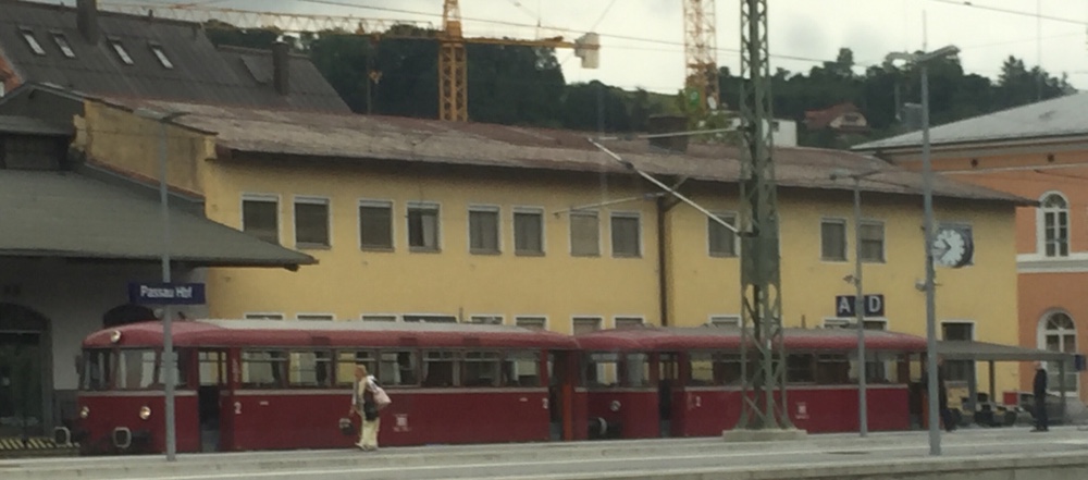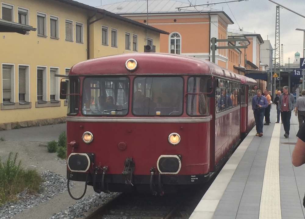 Auf Gleis 1a wartet bereits eine 2-teilige Garnitur von Uerdinger Schienenbussen (https://de.m.wikipedia.org/wiki/Uerdinger_Schienenbus) der Ilztalbahn (http://ilztalbahn.eu) auf uns.