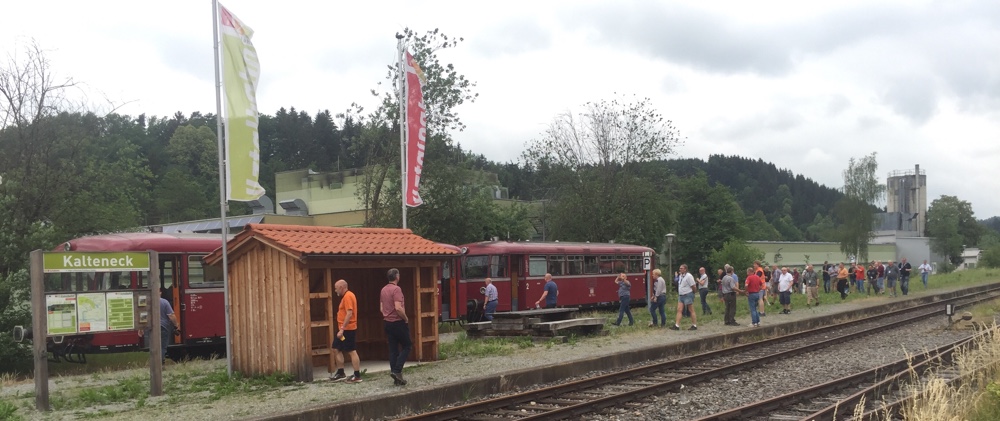 Am Endpunkt der Strecke in Freyung (https://www.freyung.de) gibt’s eine halbstündige Pause. Diese Freizeit reicht nicht aus um ins Dorf zu gehen, wohl aber um im Stehcafe auf der Rückseite des Bahnhofs einzukehren und was Kleines zu essen und zu trinken.