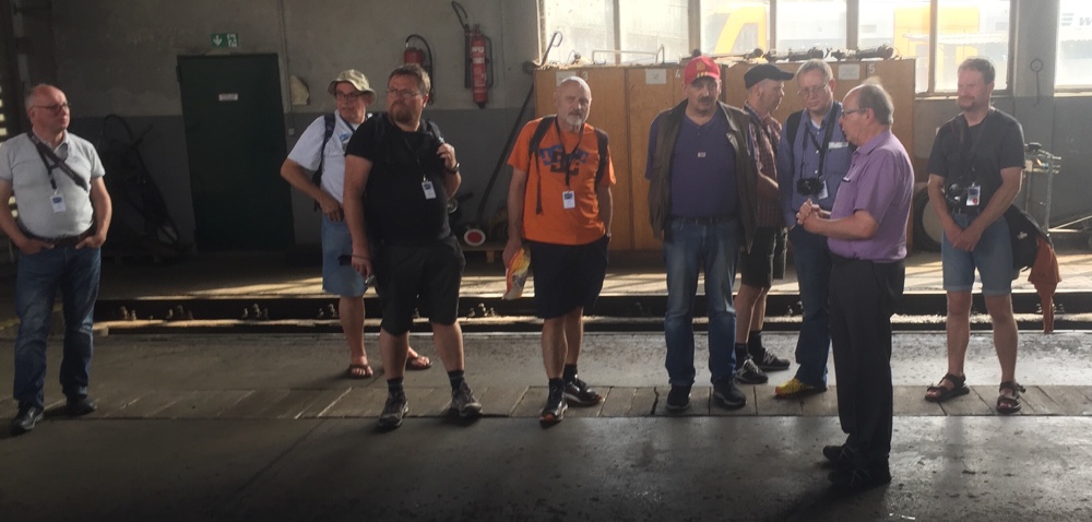 Hier erhalten wir nun eine kompetente Führung durch Schienenfahrzeughallen und Werkstätten.