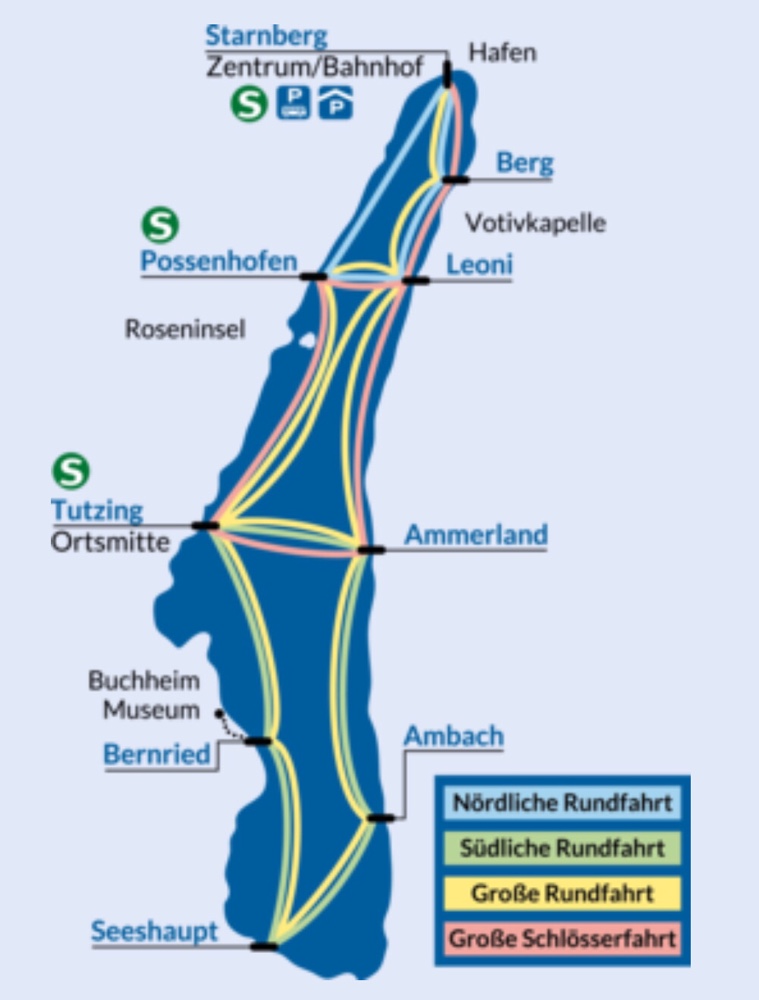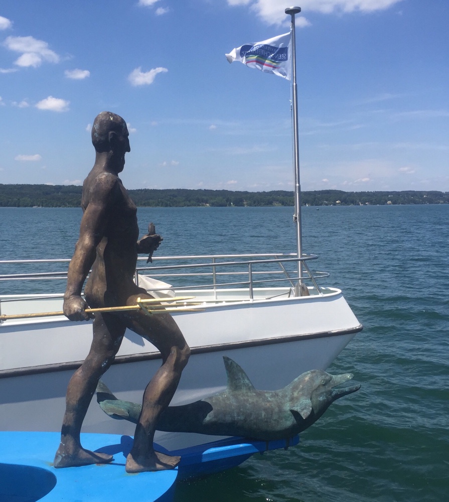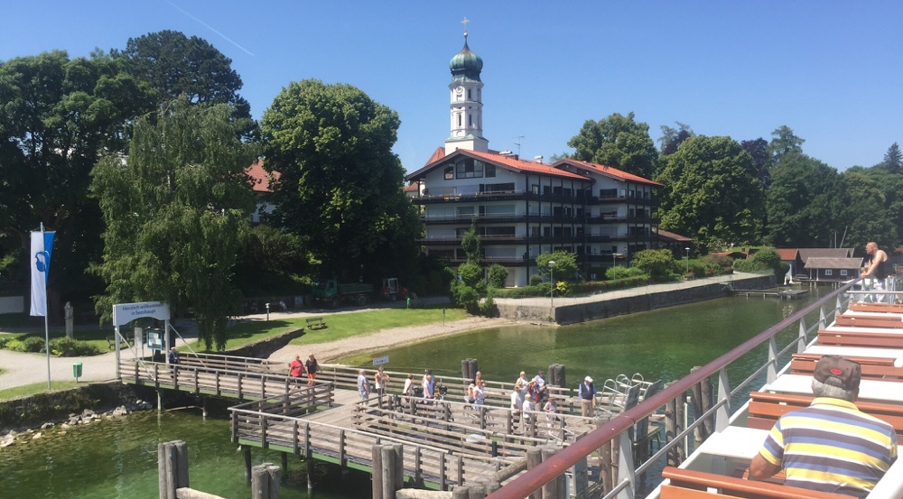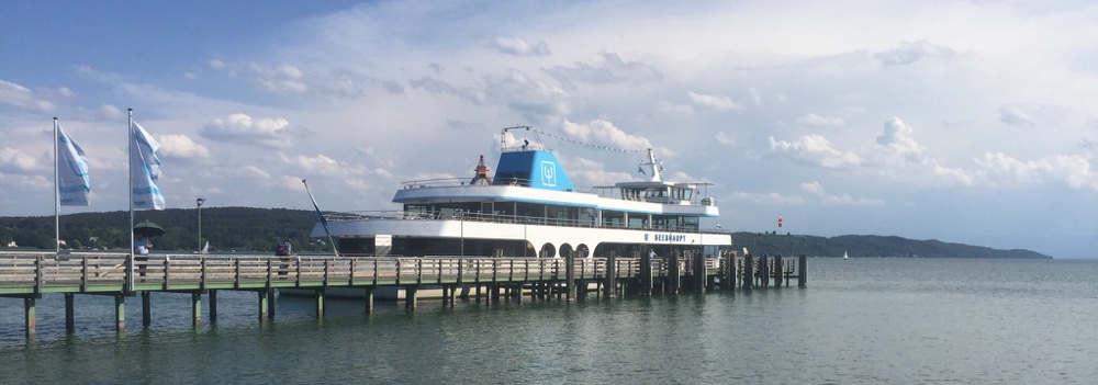 Anstatt lange herumzutrödeln starten wir um 10.35 zu einer grossen, über 3 Stunden langen Schiffsrundfahrt ans andere Ende des Sees nach Seeshaupt und Amberg und auch wieder zurück.