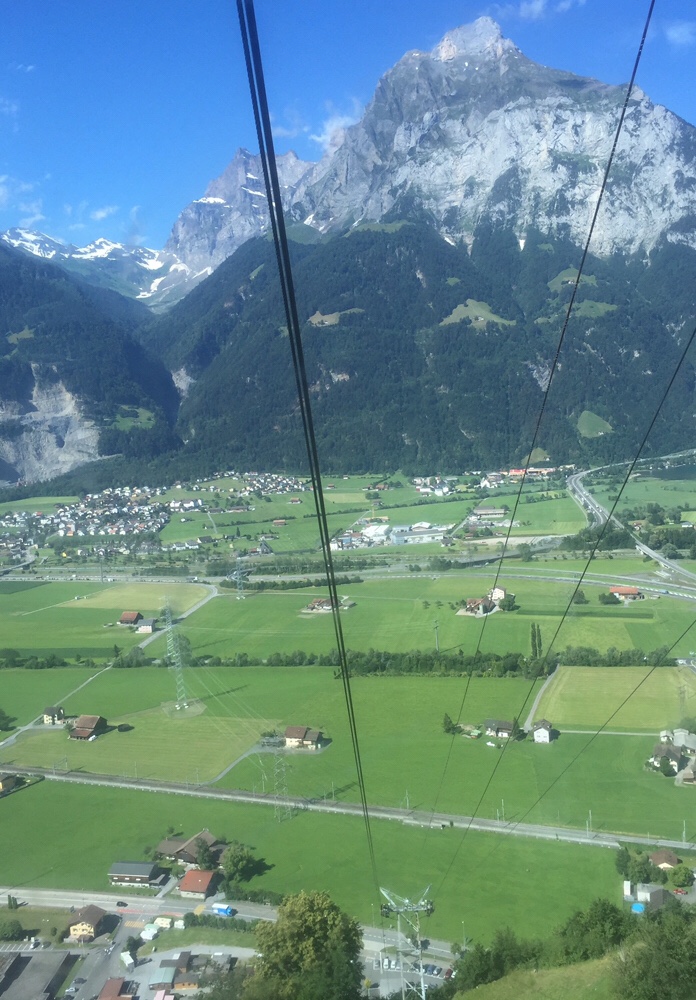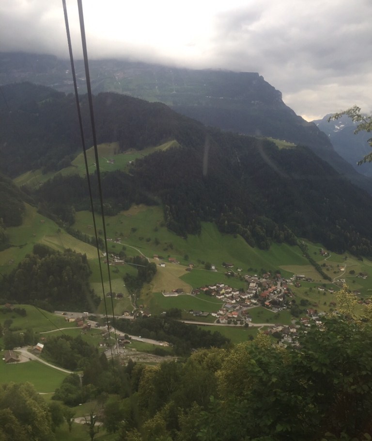 In 2 langen, steilen Sektionen mit Kabinen zu 6 bzw zu 4 Personen, geht die Bahn von Ruogig runter ins Schächental,