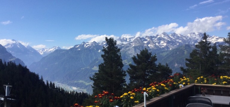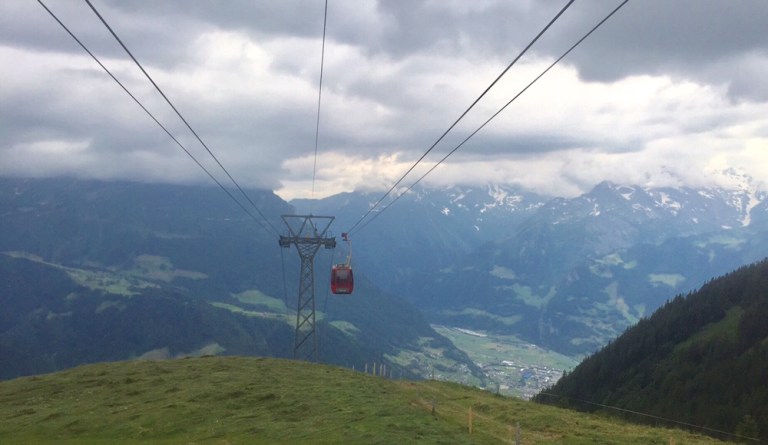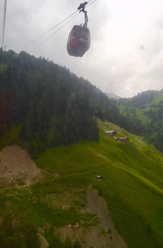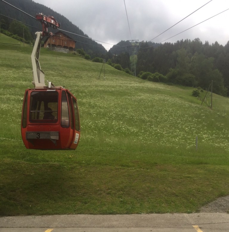 Ein paar Minuten nach mir kommt auch meine Schwester Madeleine an. Gemeinsam laufen wir die paar Meter zur kleinen Luftseilbahn, die uns kurz nach 10 Uhr