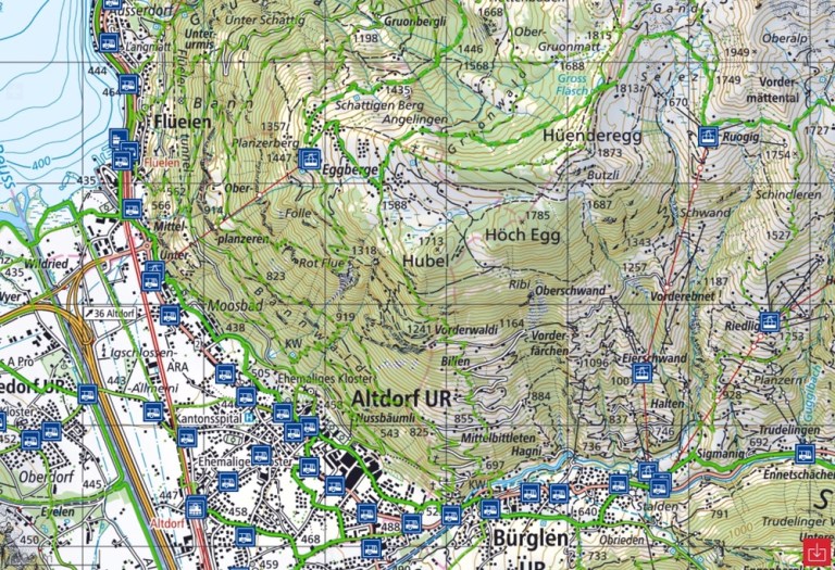 Talstation Eggberge in Flüelen (und weiter zum Telldenkmal in Altdorf).