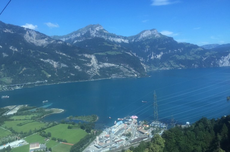 auf den Vierwaldstättersee mit seiner künstlichen Seerose (https://www.srf.ch/news/regional/zentralschweiz/seerose-wird-umgebaut-landschaftsschutzverband-wenig-begeistert-vom-neuen-projekt) und in die Berge rundherum. In der 15 Personen-Kabine werden während der 9-minütigen Reise alle wissenswerten Neuigkeiten und Informationen ausgetauscht.