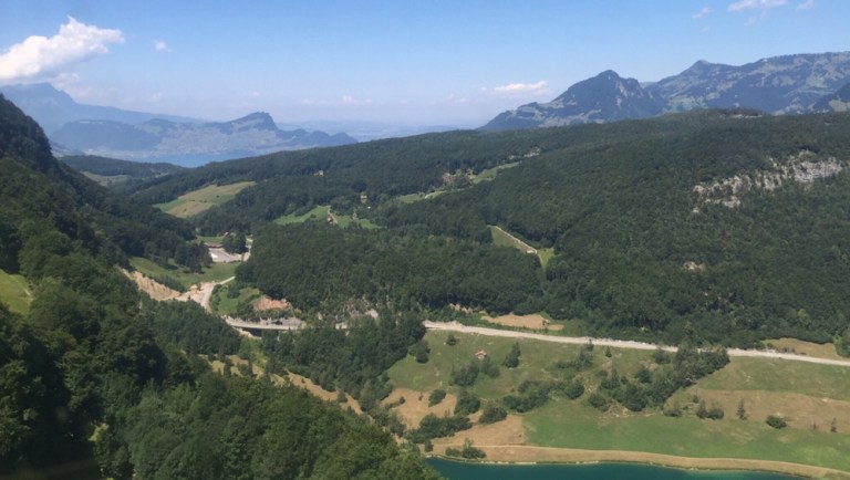 Nun wenden wir uns ab vom Vierwaldstättersee und sehen bald darauf rechts unten den Seelisbergsee.