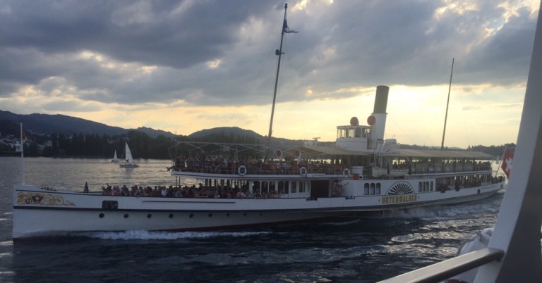17.57 startet hier unsere 110-minütige genussreiche Schifffahrt nach Luzern.