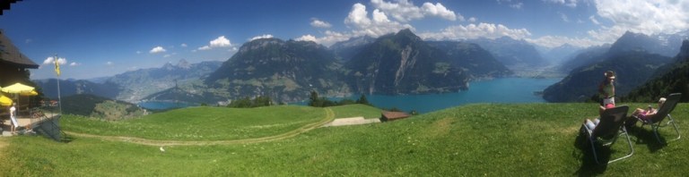 Zum wandern ist es uns hier oben nicht zumute: entweder geht es steil Bergauf zur Alp Lauweli oder noch steiler Bergab nach Seelisberg. Also geniessen wir das Essen und die Aussicht!