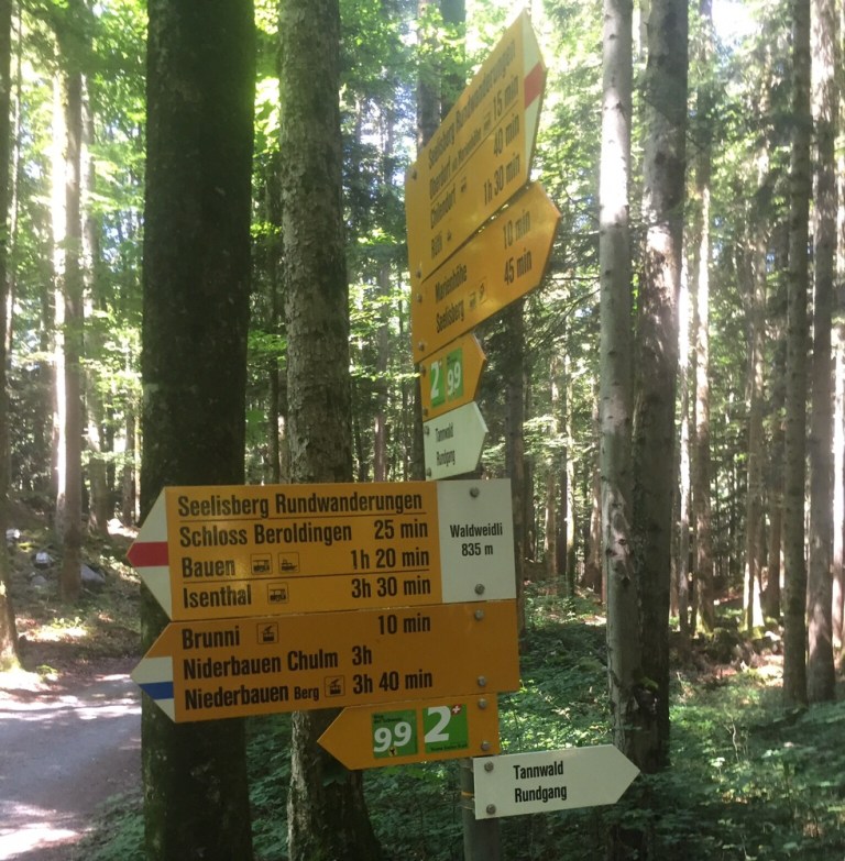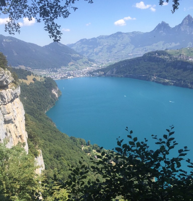 Kurzer Aufenthalt im Dorfladen, bevor wir auf der Wanderroute 99, dem Weg der Schweiz, das Dorf Richtung Süden verlassen. Dieser Wanderweg wurde 1991 zur 700 Jahr Feier der Schweiz angelegt. Schon bald erreichen wir einen wunderschönen Aussichtspunkt hoch über dem Vierwaldstättersee.