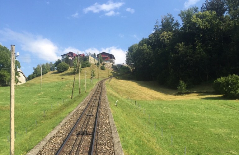 Nach dem Umsteigen geht die Fahrt weiter bergab