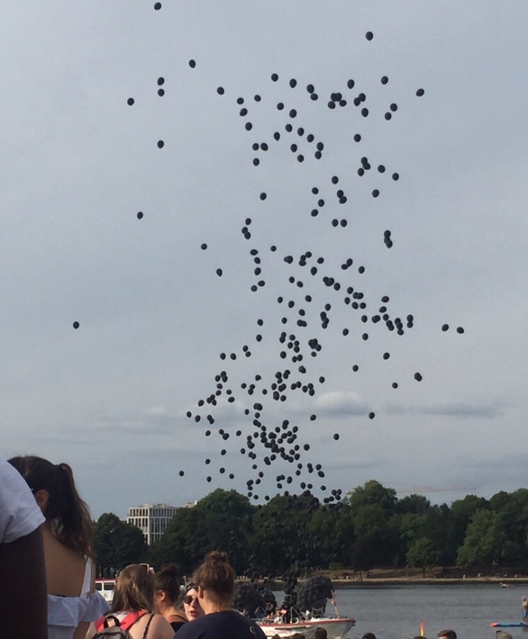 Punkt 18 Uhr verstummt alle Musik und Partylärm. Es ist Zeit die schwarzen Ballone, zur Erinnerung an die im vergangenen Jahr wegen Aids verstorbenen FreundInnen. Es sind immer noch erschreckend viele, sinnlose Menschenleben zu beklagen.