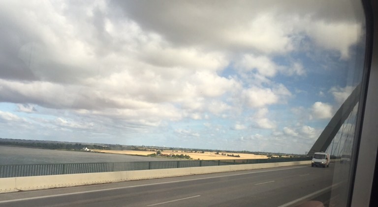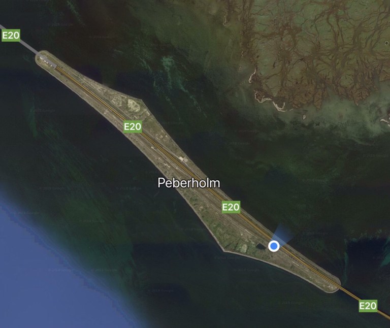 Auf der künstlichen Insel Peberholm, der Grenze zwischen Dänemark und Schweden und dem Übergang zwischen Tunnel und Brücke haben wir einen längeren Aufenthalt wegen einem vorausfahrenden Güterzug mit Problemen.