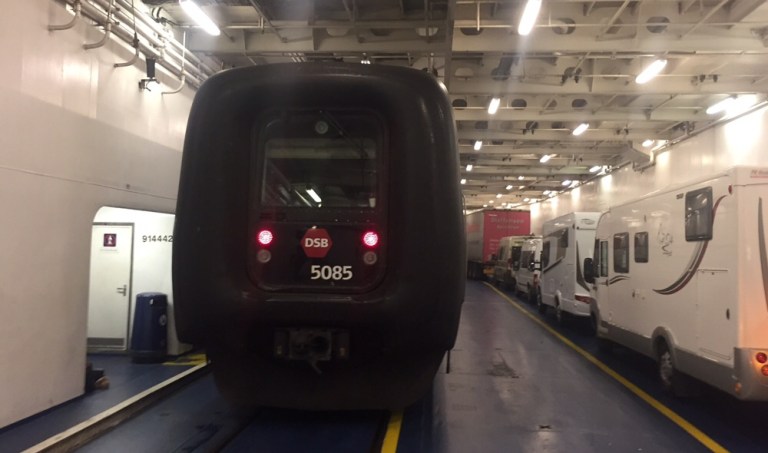 Pünktlich erreichen wir Rödby, den dänischen Fährort auf der nördlichen Seite des Belts. Trotz Schengenraum findet eine Passkontrolle im Zug statt.