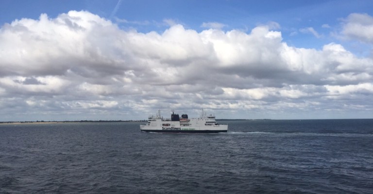 Nur noch 2 Minuten verspätet treffen wir in Puttgarden ein. Nach einer knappen Minute Halt, fährt der Zug weiter und in die wartende Fähre rein. Noch sind nicht alle Reisenden ausgestiegen,