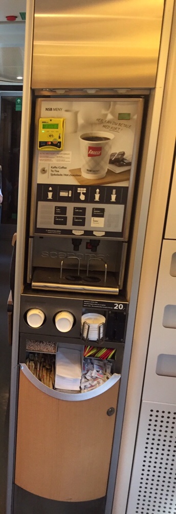 Mit meinem Interrail der 1. Klasse müsste ich aber bei jedem neuen Fahrtantritt vorher im bedienten Verkauf eine neue Gratis-Komfortabteilzuschlagskarte erstehen. Diese Regel gelte auch im Osloer Vorortsverkehr, wo ich nun also eine Platzreservationen und einen Cappuccinojeton erhalte. Stupide Regel, die mir mit gewichtiger Stimme von einem Verwaltungsmann am Osloer Hauptbahnhof erklärt wird; Das Zugpersonal versteht sie nicht, ist aber machtlos.