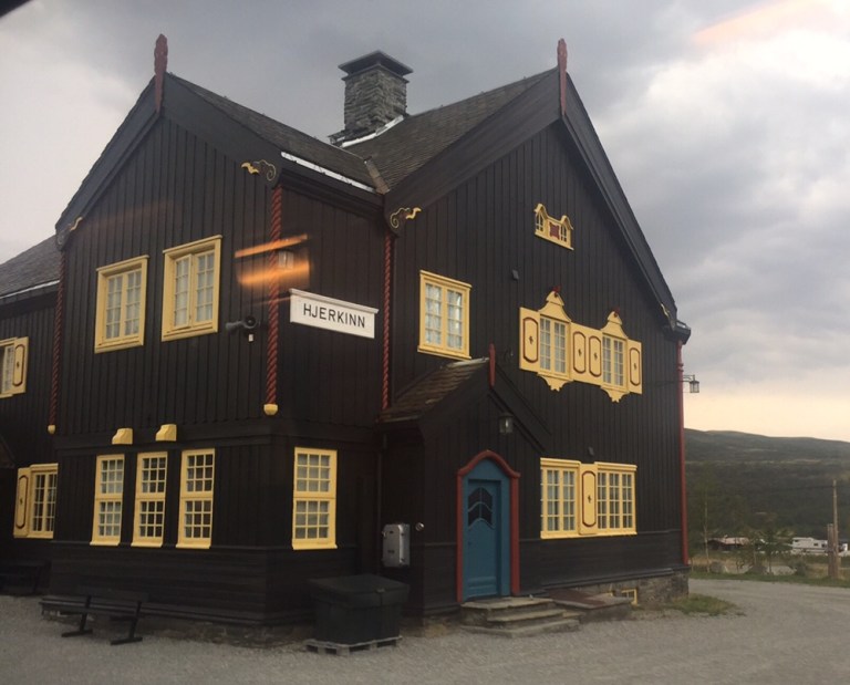 Bald haben wir die Passhöhe erreicht und fahren in den 1017 Meter über Meer gelegenen Bahnhof Hjerkinn (https://no.m.wikipedia.org/wiki/Hjerkinn) ein.