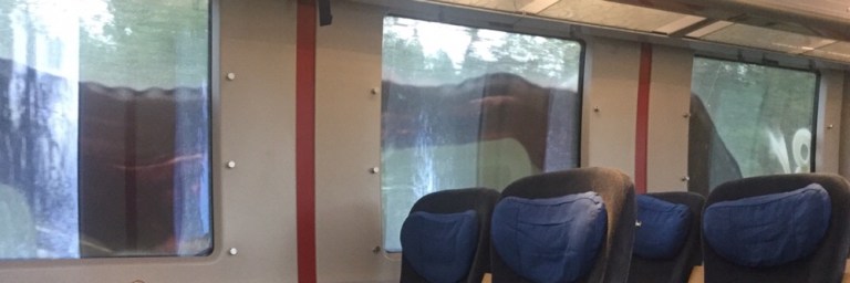 Ich lasse mich nicht abschrecken, frage niemanden mehr, steige einfach ein, wie es viele andere Sitzplatzkartenlose auch tun und kriege sogar einen Fensterplatz! Mein Fahrausweis wird anerkannt, keine Probleme, trotz vielen Stehplätzen!