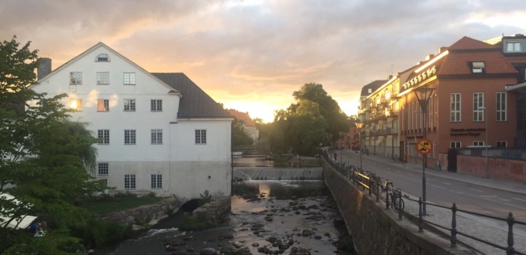 Der Himmel reisst zusehends auf, das Wetter wird schöner. Kurz vor 17 Uhr in Gävle. Habe nun doch langsam Hunger und Durst, Pølser und Softdrink, will dafür aber wieder mal richtig Middag essen.