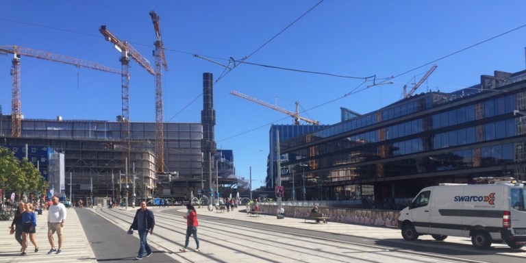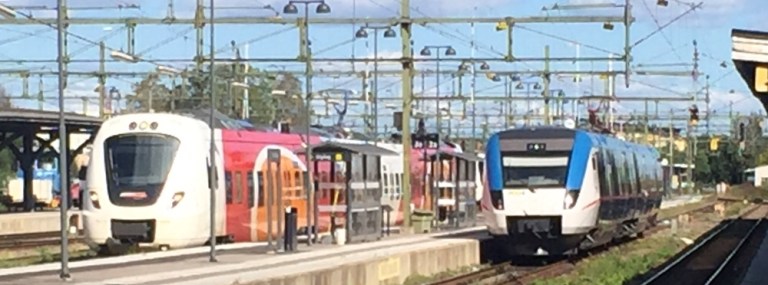 Mit der S-Bahn fahre ich nach Stockholm Södra. Die Fernreiseverbindungen sind wegen Unterhalt und teilweisem Neubau der Strecke diesen Sommer unterbrochen. Ich muss also in Stockholm Södra auf den Fernzug umsteigen.