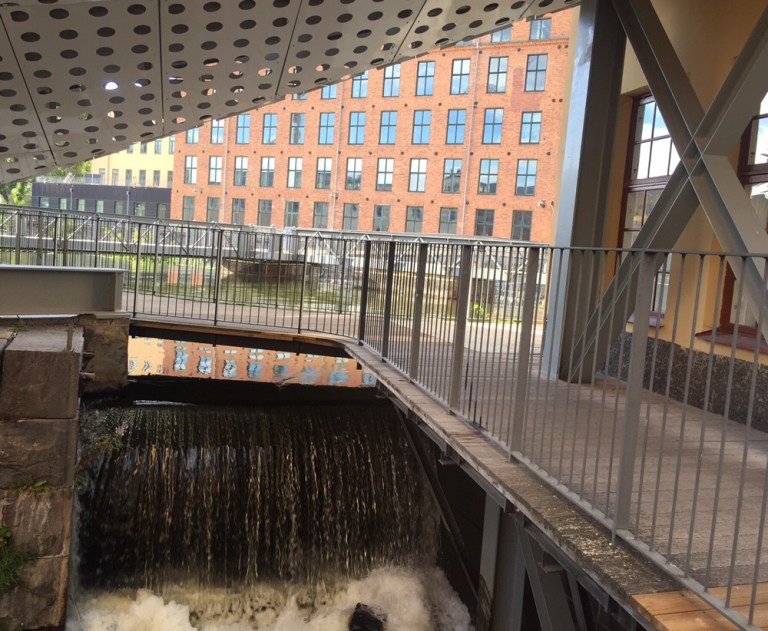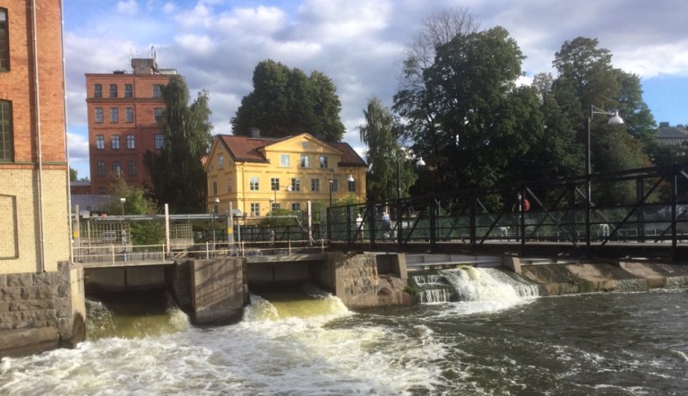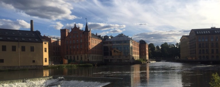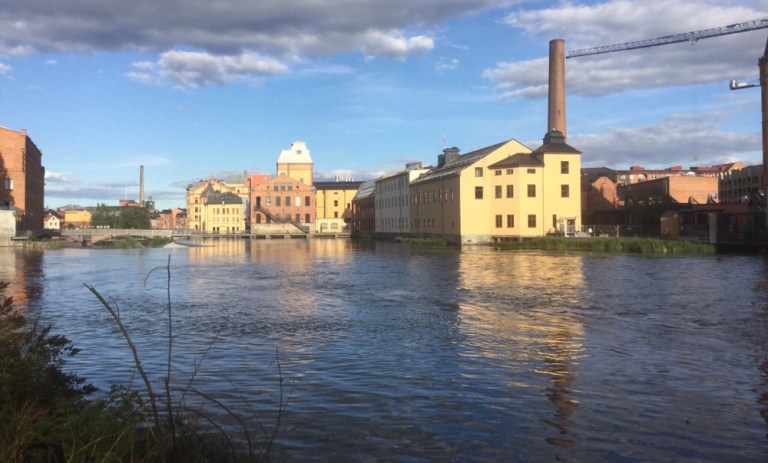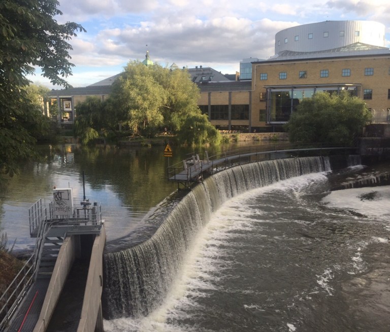 der aus dem Vätternsee rausfliesst und hier in der Nähe im Meer endet, ins Stadtzentrum. An den Fischtreppen sind Möven zu sehen, die wenig erfolgreich zu fischen versuchen. Lustiges Schauspiel, wahrscheinlich nicht für die gejagten Fische.