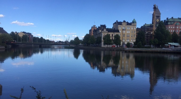 der aus dem Vätternsee rausfliesst und hier in der Nähe im Meer endet, ins Stadtzentrum. An den Fischtreppen sind Möven zu sehen, die wenig erfolgreich zu fischen versuchen. Lustiges Schauspiel, wahrscheinlich nicht für die gejagten Fische.