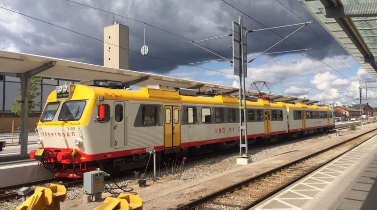 Emmaboda umsteigen 12.25 > 12.34 in einen alten Vorortszug, der aussen neu lackiert und innen neu möbliert worden ist. Eigentlich könnte ich im Landesinnern viel rascher Vorwärtskommen, mir gefällt aber die Reise entlang der südschwedischen Küste. 13.16 in Karlskrona, schon wieder umsteigen.