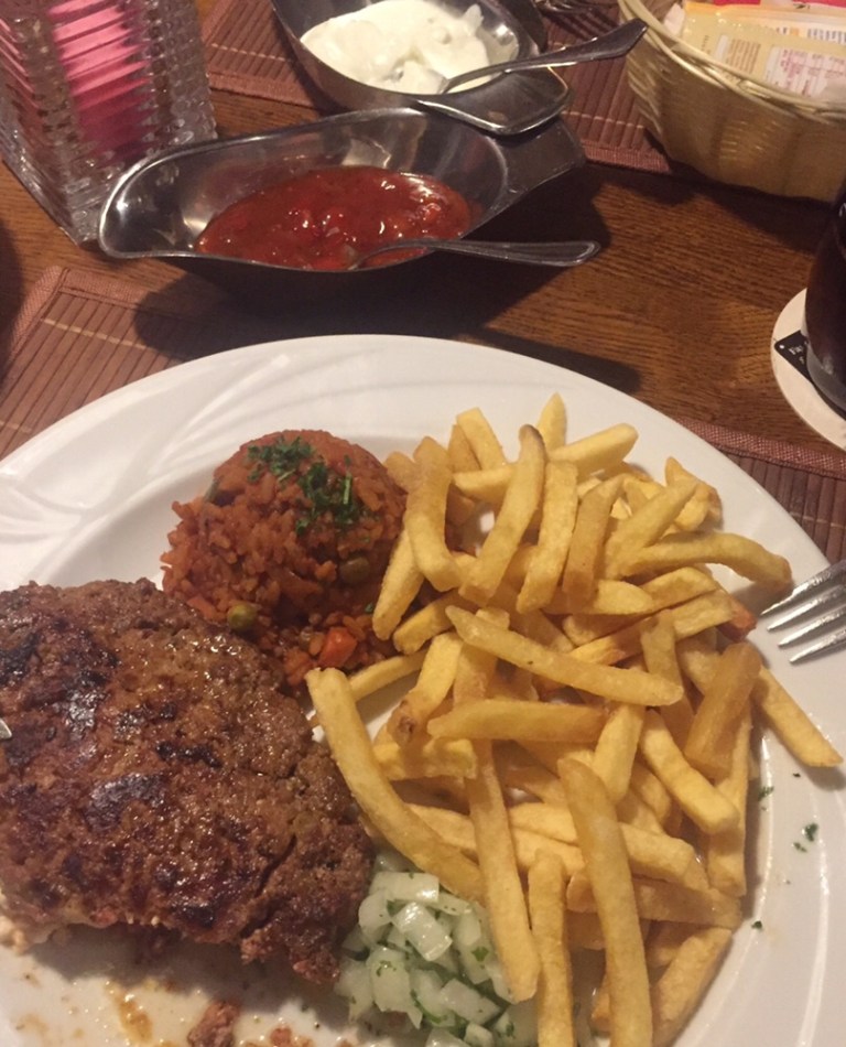 Spaziergang durch die Stadt und Abendessen bei einem originalen Kroaten, Pljeskavica, Hackfleischtätschchen gefüllt mit Schafskäse, hhhmmm.