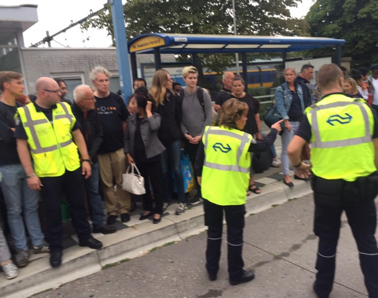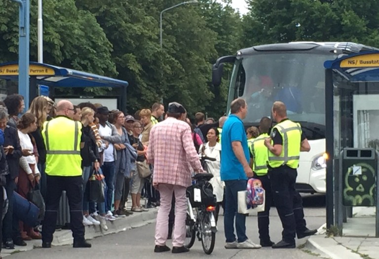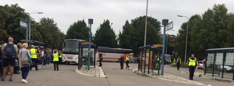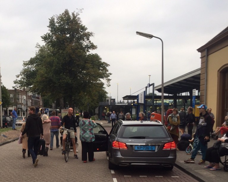 Auf dem Bahnhofsplatz wo die Bahnersatzbusse fahren sollten herrscht ein riesiges Chaos. Teilweise warten weit über 1’000 gestrandete Reisende auf ihren Weitertransport. Über ein Dutzend kundenlenkende Einsatzkräfte und regionale Chefs der niederländischen Staatsbahn stehen in ihren Leuchtwesten herum und wissen offenbar nicht was tun. Jede Minute kommen neue Busse aus Zwolle an, die ‚entladen‘ und dann auf eine Leerrunde weggeschickt werden. Ich zähle bis zu 8 auf den Belad wartende Busse mit geschlossenen Türen. Überall stehen Reisende herum und möchten nur möglichst schnell nach Hause. Die Einsatzkräfte der NS agieren jeder für sich, die Busfahrer verwerfen die Hände. Immer mehr offizielle und freie ‘Taxifahrer’ stehen da und wittern ein gutes Geschäft. Das ’Beladen’ eines einzigen Busses dauert teils über 5 Minuten, weil nicht gezählt wird wieviele Reisende schon in einen Bus eingestiegen sind bzw wieviele freie Plätze es im Bus noch hat. Erst nach über 90 Minuten nach meiner Ankunft hier (der Bahnersatzverkehr lief aber schon 2 Stunden früher an) sind Absperrbänder gezogen und das Ganze läuft in einigermassen geordneten Bahnen.