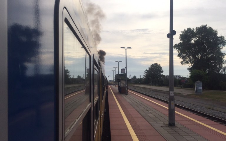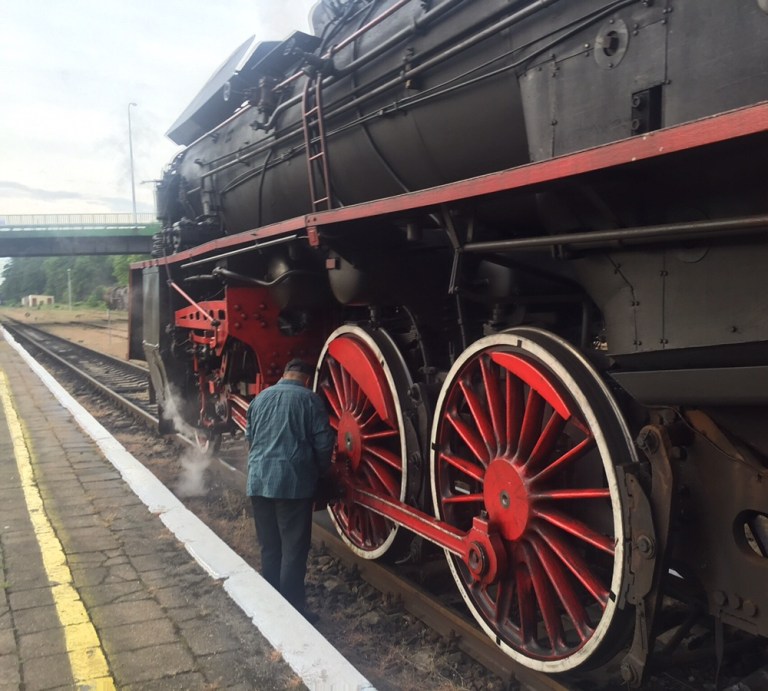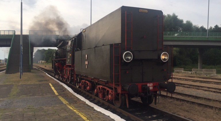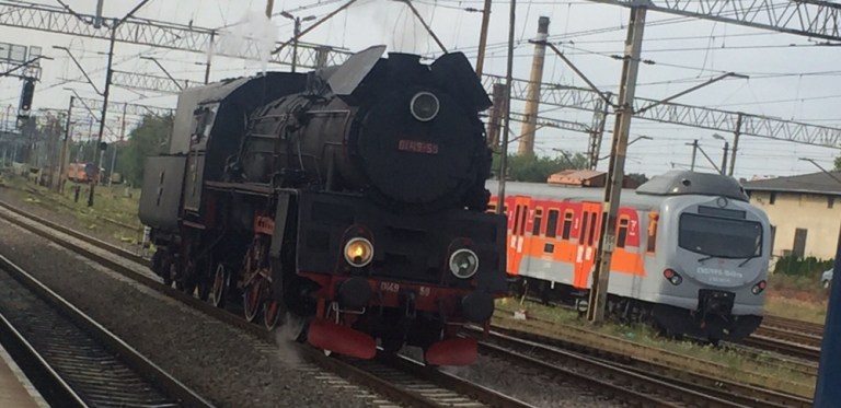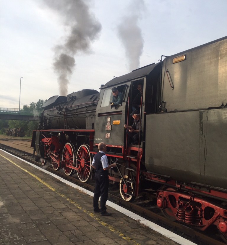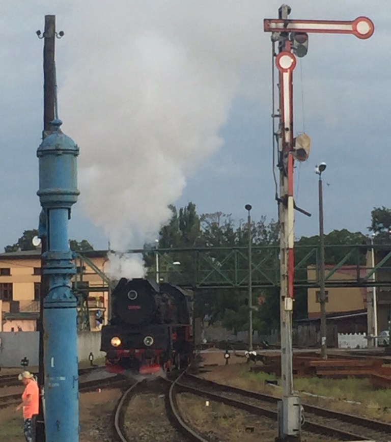 Mit nur wenigen Minuten Verspätung treffen wir in Posen ein. Die Lok wird abgehängt und fährt Richtung Bahnbetriebswerk um Wasser zu fassen.