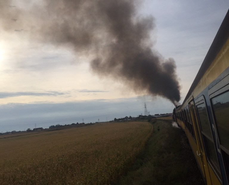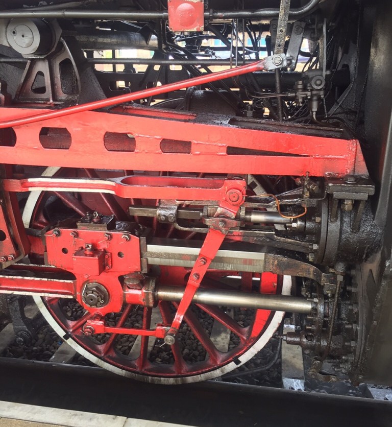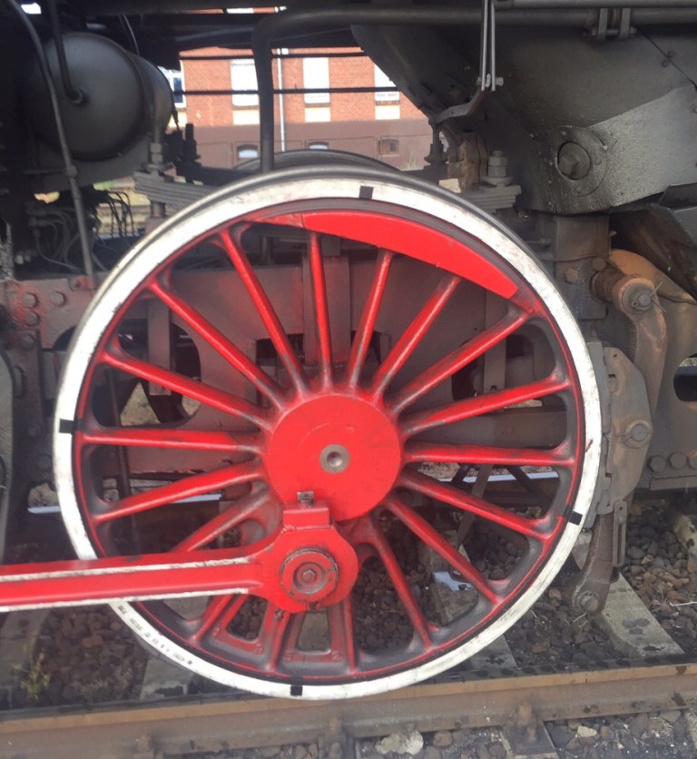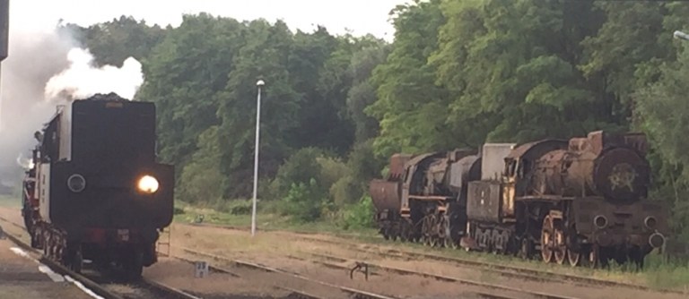 7.52 geht die Fahrt los. Ohne aufdatierte Streckenkenntnisse fahren die Hobby-Eisenbahner unter professioneller Aufsicht 17 Zwischenhalte on. Welche ein Gegensatz: neue, moderne Bahnsteige vor alten Gebäuden, neues bzw verschlanktes Gleisnetz und ein alter Dampfzug mit mittelalterlichen farbigen Reisezugwagen!