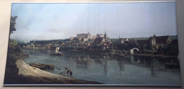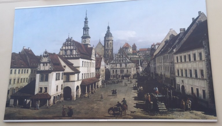 Als erstes sehen wir das Abbild eines berühmten Gemäldes von Bernardo Bellotto , genannt Canaletto (https://de.m.wikipedia.org/wiki/Bernardo_Bellotto) im Pirnaer Bahnhof.