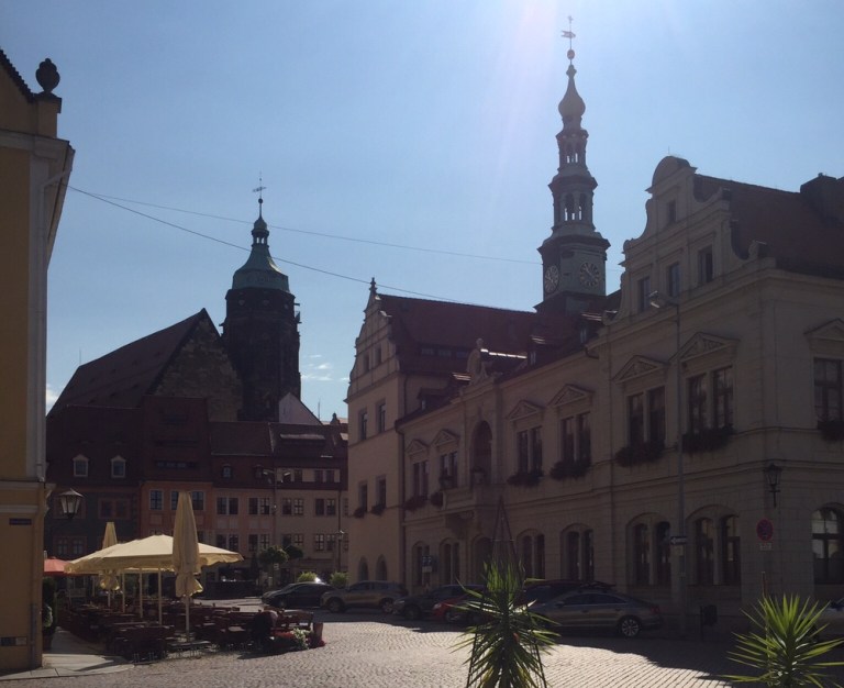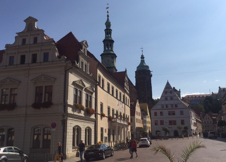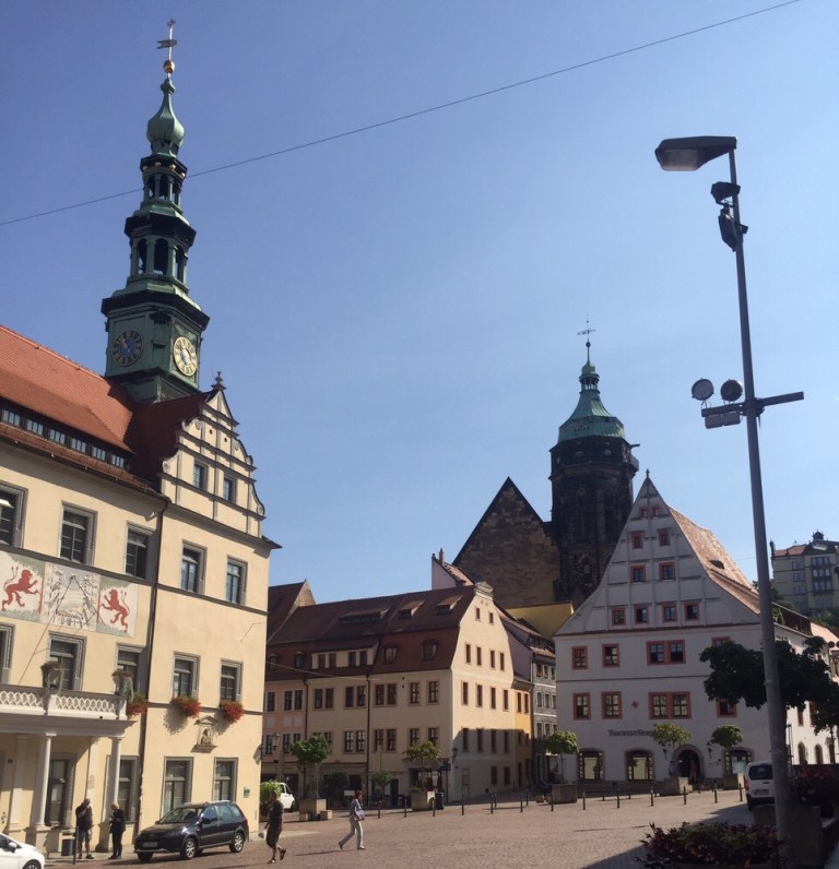 Stadtkirche, Schloss, Dohnaischer Platz, Friedenspark (https://de.m.wikipedia.org/wiki/Pirna).