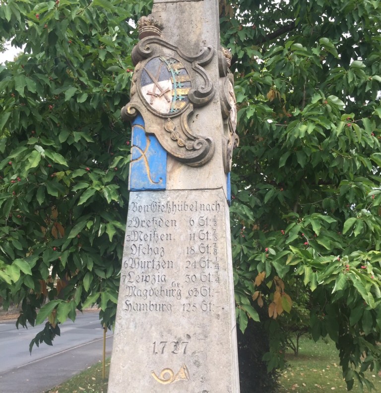 Als nächstes fällt uns eine dieser herrlichen sächsischen Postmeilensäulen auf (https://de.m.wikipedia.org/wiki/Kursächsische_Postmeilensäule).