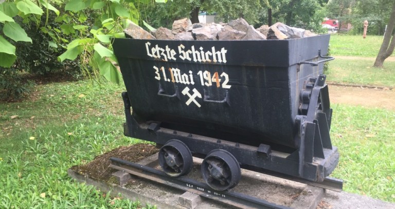 Wir wollen aber nicht kuren, sondern nach Spuren von Eisenbahnen suchen. Als erstes fallen Stollenloren auf.