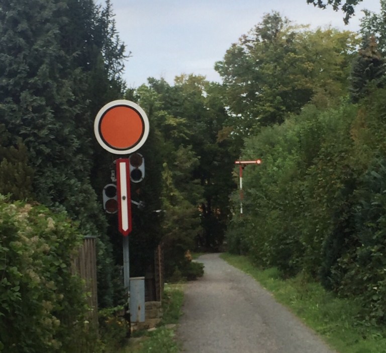 Dann aber sehen wir eine kleine Eisenbahnbrücke und Spuren eines Bahnhofs.