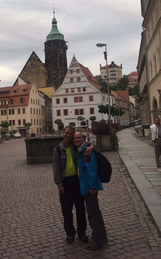 Komme eine halbe Stunde zu spät in Pirna an, wo mich Heiko, der Eisenbahnliebhaber und Ehemann von Achmed erwartet und mich mit einer dicken Umarmung herzlichst begrüsst. Heiko ist mein heutiger Reiseführer, danke!