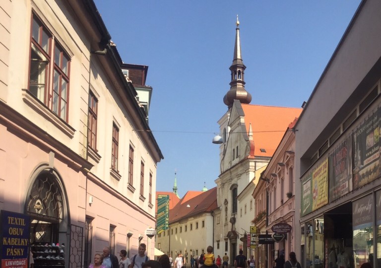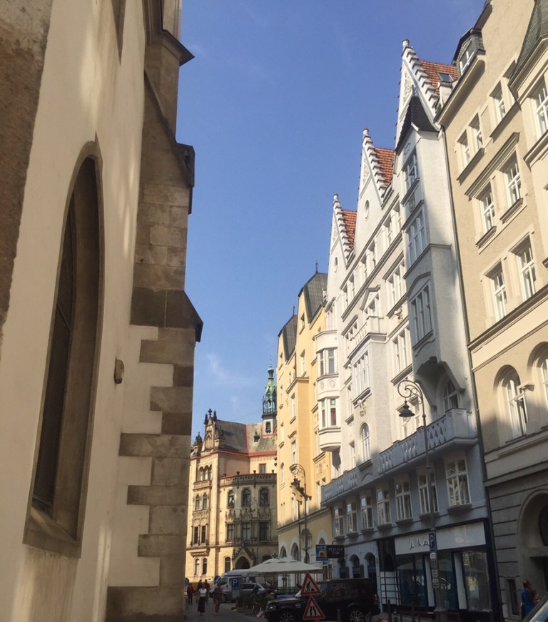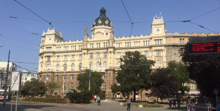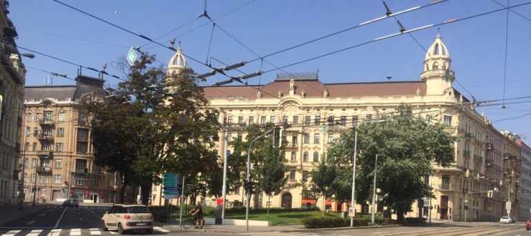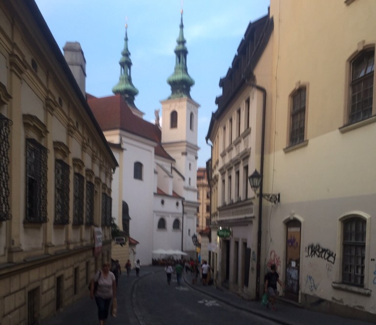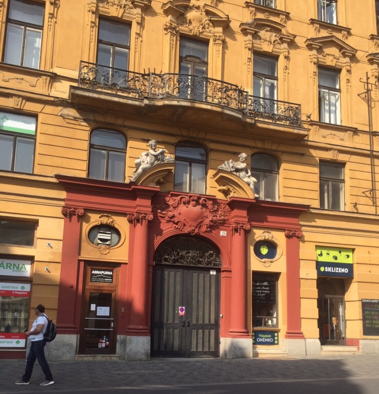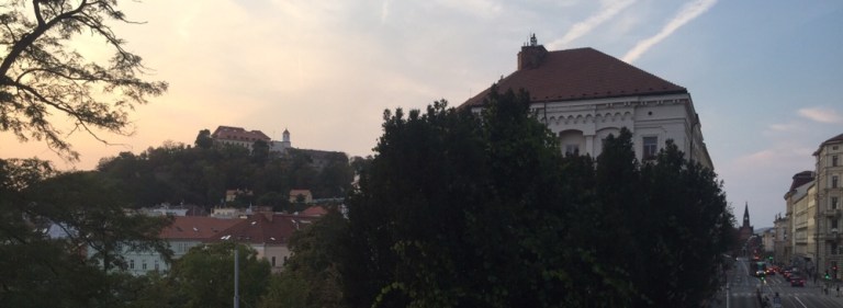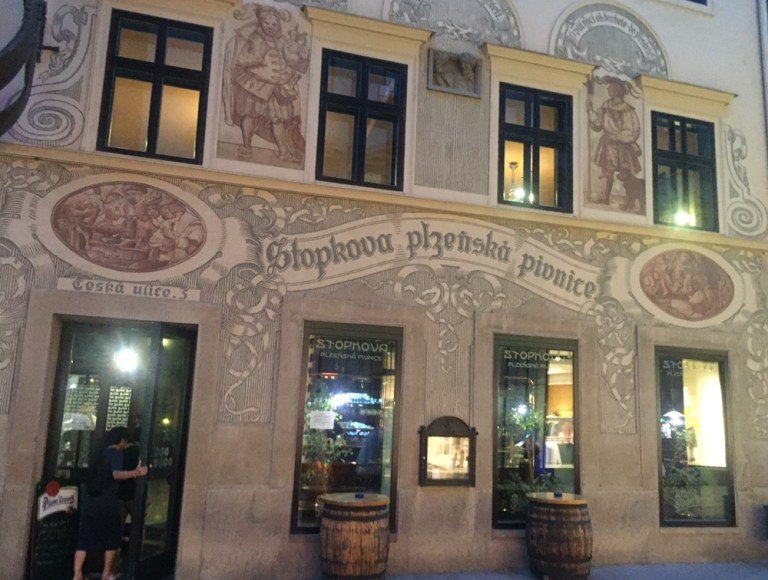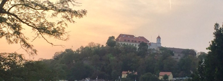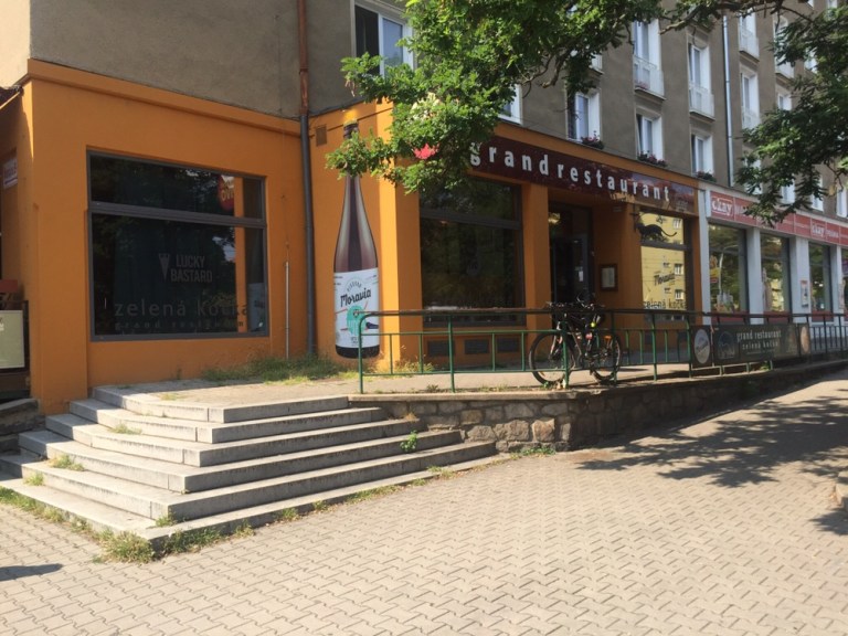 28 Grad warm ist es am Mittag. Esse auf der schattigen Terasse des Grand Restaurant Zelená Kočka (http://www.zelenakocka.cz/galerie-grand.php) einen Spätzle-Sauerkraut-Schinken Eintopf. Herrlich! Das Schönste aber erwartet mich nach dem Essen, als ich meine volle Blase entleeren muss: