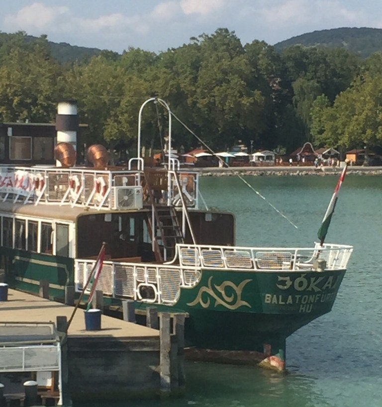Um 14.30 starte ich zu einer Schifffahrt (https://de.m.wikipedia.org/wiki/Balaton) auf dem Plattensee nach Balatonfüred / Bad Plattensee (https://de.m.wikipedia.org/wiki/Balatonfüred)
