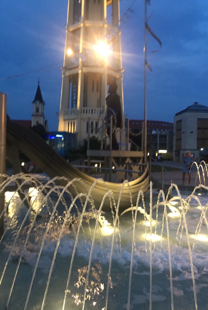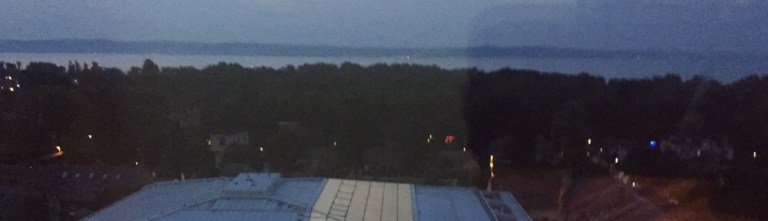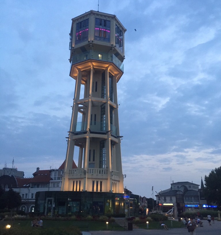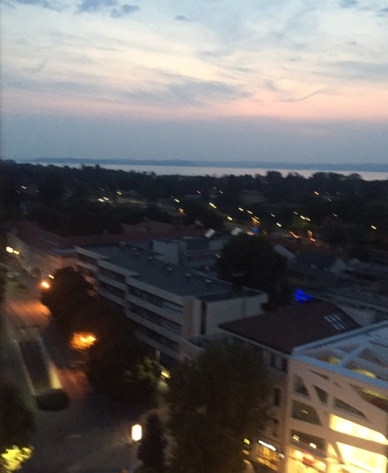 Ist ein ganz schmuckes Städtchen! Lasse mich als es schon dunkel ist auf den renovierten ehemaligen Wasserturm hochfahren. Kaffee und Aussichtsort in 45 Metern Höhe. Lasse mich 3 Mal im Kreis herumfahren, so dass ich noch ein paar Fotos schiessen kann,