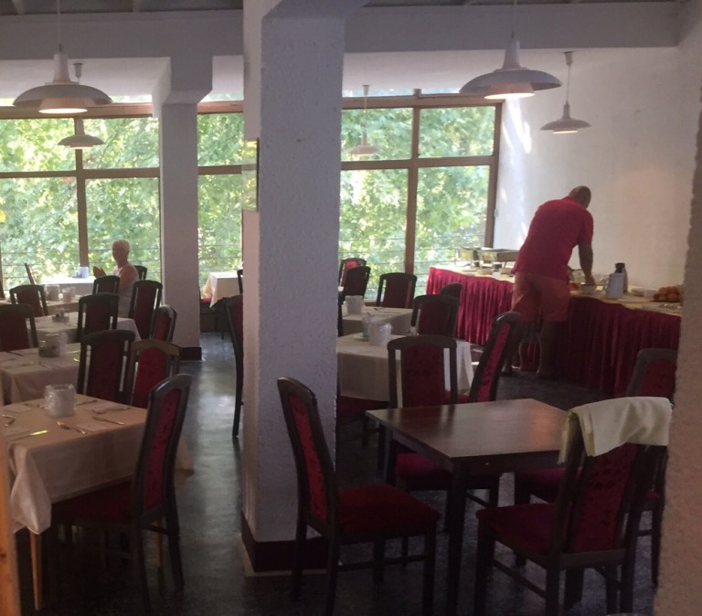 Habe wunderbar geschlafen. Das Frühstücksbuffet sieht wie zu sozialistischen Zeiten aus, die Auswahl ist klein, zu kühlende Sachen schon Zimmerwarm, keine Frucht die nicht angefault oder zumindest angeschlagen ist, aber es mundet. Eine Portion Butter ist hart am Geniessbarkeitsdatum und das Brot dazu schon sehr trocken.