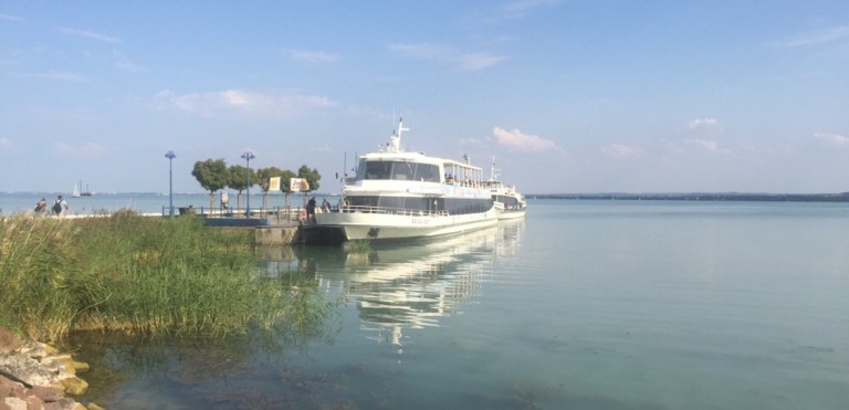 Um 14.30 starte ich zu einer Schifffahrt (https://de.m.wikipedia.org/wiki/Balaton) auf dem Plattensee nach Balatonfüred / Bad Plattensee (https://de.m.wikipedia.org/wiki/Balatonfüred)