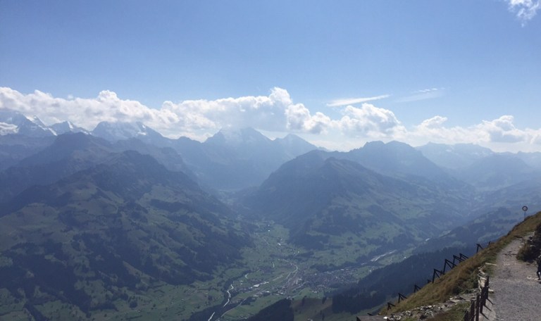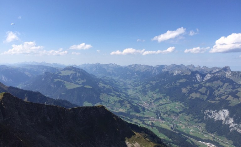Ausblick ins Simmental. Ganz rechts ist das markante Stockhorn zu sehen.