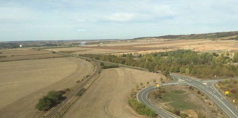 Die Neubaustrecke im Rahmen des Projekts deutsche Einheit zwischen Halle und Erfurt bin ich im Gegensatz zu deren südlicher Fortsetzung nach Lichtenfels noch nie gefahren. Interessante Landschaft, leider stören hin und wieder bis zu 6 Meter hohe Lärmschutzwände.